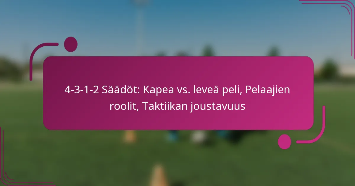 4-3-1-2 -muotoilu mahdollistaa merkittävän taktisen joustavuuden, erityisesti kapean ja leveän pelin säätöjen kautta. Nämä säädöt voivat parantaa joukkueen hyökkäysvaihtoehtoja ja puolustusvakautta hyödyntämällä tilaa tehokkaasti kentällä.