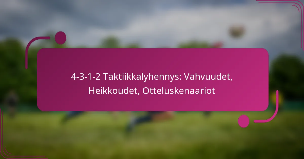 4-3-1-2 -muotoilu on jalkapallon taktinen asettelu, jossa on neljä puolustajaa, kolme keskikenttäpelaajaa, yksi hyökkäävä keskikenttäpelaaja ja kaksi hyökkääjää. Tämä muotoilu on suunniteltu parantamaan keskikenttäkontrollia ja helpottamaan nopeita siirtymiä, mikä tekee siitä tehokkaan joukkueille, jotka haluavat hallita palloa samalla kun säilyttävät vahvan puolustusrakenteen. Siinä on kuitenkin myös tiettyjä heikkouksia, erityisesti laajassa pelissä ja vastahyökkäystilanteissa, jotka voivat haastaa sen kokonaisvaikuttavuutta eri ottelutilanteissa.